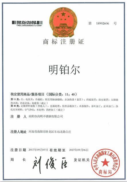 明鉑爾®國家商標知識產權榮譽證