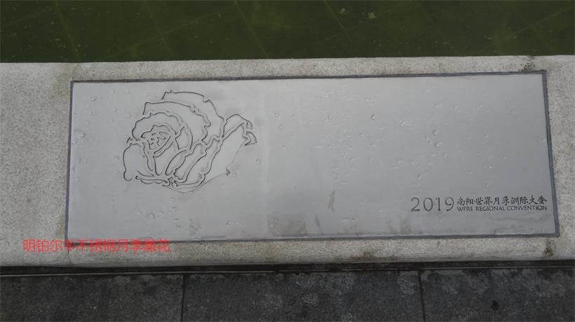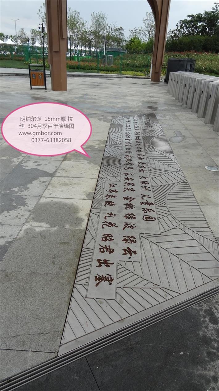 明鉑爾?不銹鋼月季園主入口大門304不銹鋼10毫米厚欄桿,6毫米厚水池10塊月季花圖,利用不銹鋼的拉絲紋路反光色差經(jīng)驗(yàn),解決了北京設(shè)計(jì)院林博士要求很難做到的不銹鋼激光雕刻2毫米深度的月季花圖效果,經(jīng)過(guò)我數(shù)10次的大樣,努力,研究終于做出了最佳理想的效果,出乎意料之外的精美,背后多少時(shí)間的付出,不惜一切代價(jià)的努力方能成就精品。1957年至今13塊月季名稱地雕,近200平方擋墻6毫米月季花雕刻圖,這些所有的產(chǎn)品沒處細(xì)節(jié),每一條線都經(jīng)過(guò)CAD在電腦修改檢查再修改再檢查,打樣再修改再細(xì)化的一個(gè)漫長(zhǎng)的圖紙修改過(guò)程最終敲定的方案效果,擋土墻鉚釘內(nèi)陷,我們加焊接整體再拉絲處理,每一處方案都是創(chuàng)最優(yōu)品質(zhì)去展現(xiàn)給南陽(yáng)不銹鋼月季藝術(shù)的高水準(zhǔn),為迎接全國(guó)人民的到來(lái)參觀,憑著高要求做我們最優(yōu)的產(chǎn)品奉獻(xiàn)給南陽(yáng)這片土地…