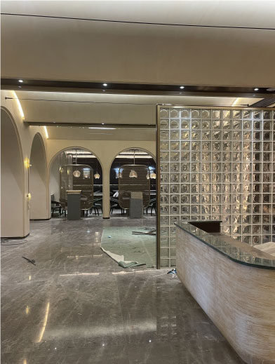 就餐區(qū)選擇了玻璃屏風(fēng),使就餐區(qū)看起來更加寬敞明亮